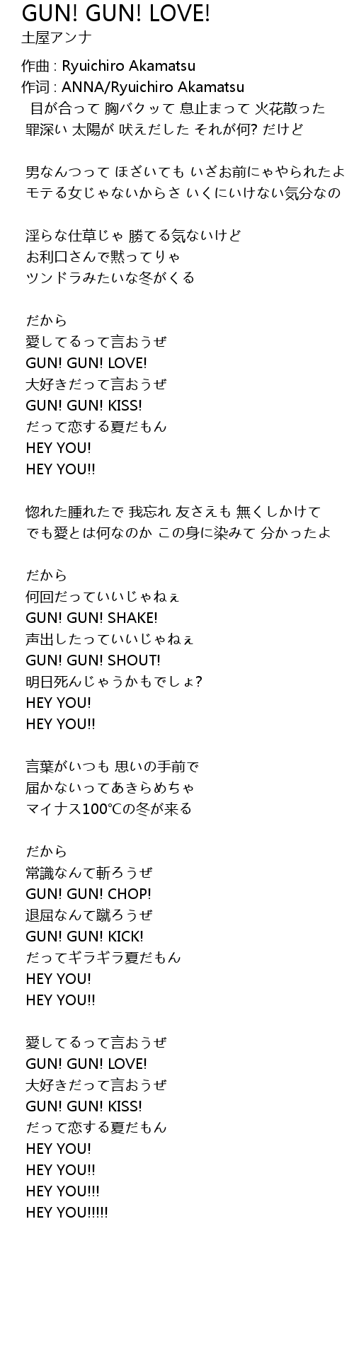 | Song | GUN! GUN! LOVE! |