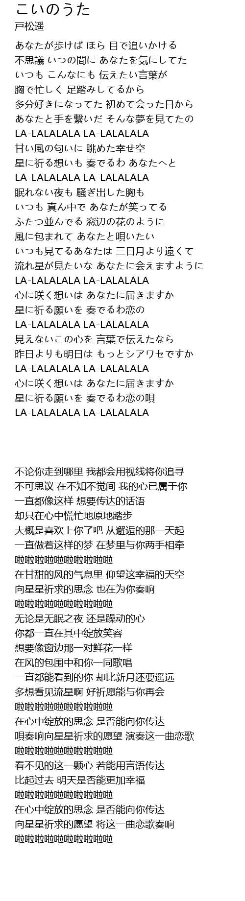 | [02:33.570] | 流れ星が見たいな あなたに会えますように |