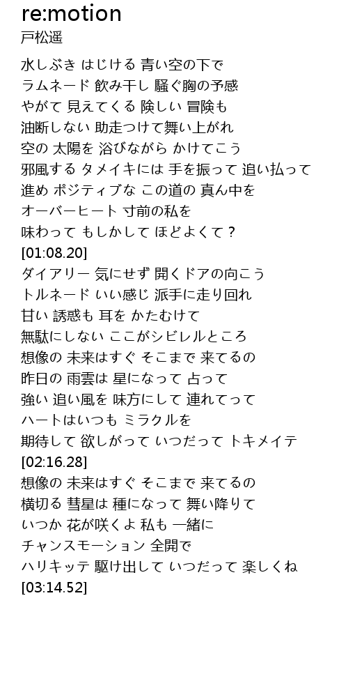 | [03:08.20] | ハリキッテ 駆け出して いつだって 楽しくね |