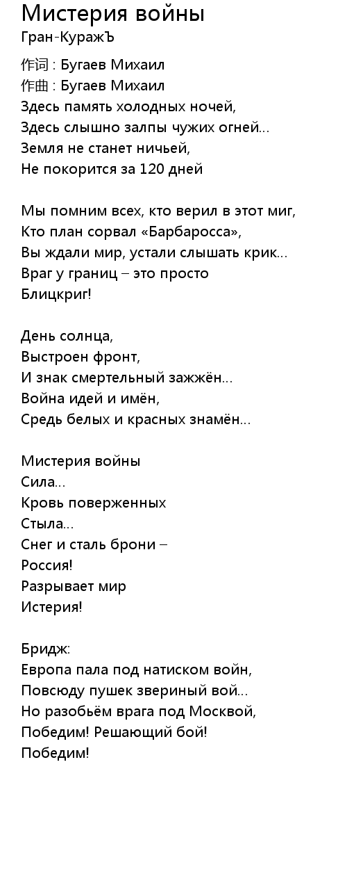 Мистерия войны  Lyrics