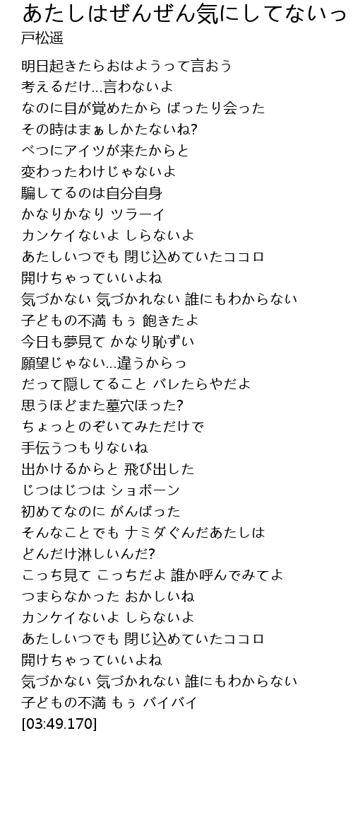 | [03:16.090] | カンケイないよ しらないよ |