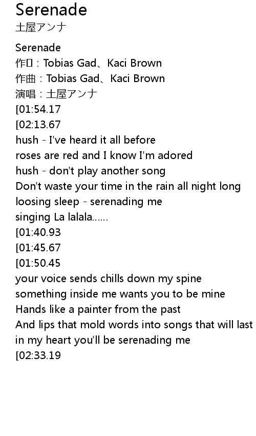 | [00:13.00][01:54.17][02:51.81] | 土屋アンナ-Serenade |