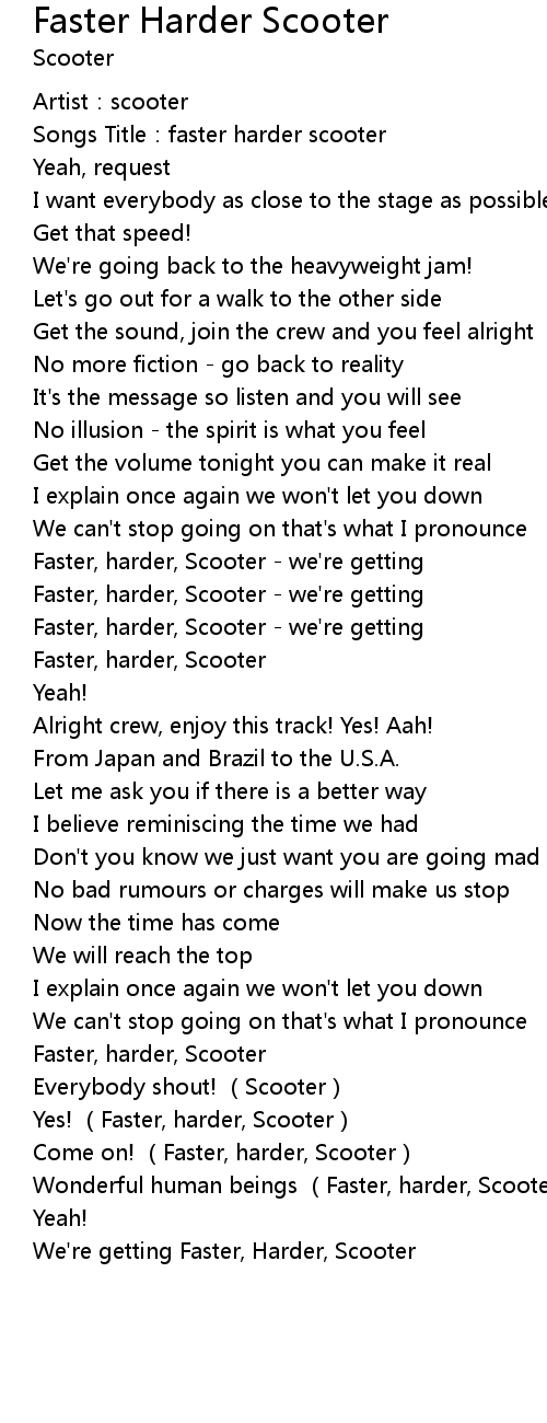 | Faster, harder, Scooter we' re getting | |