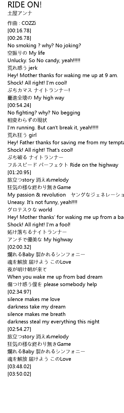 | [01:12.66] | Ride on the highway |