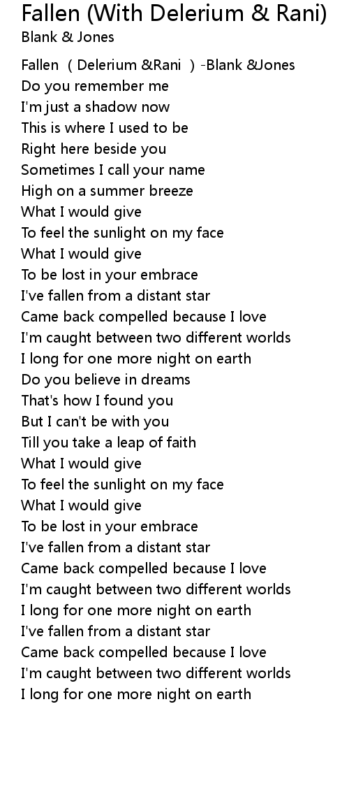 | [00:00.00] | Fallen Delerium Rani Blank Jones |