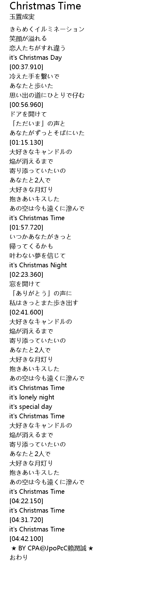 | [03:35.30] | it's Christmas Time |