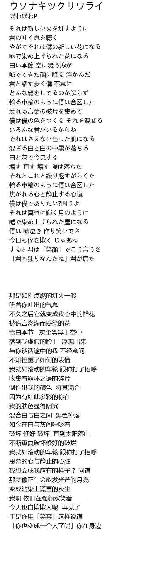 | [00:43.70] | 嘘でできた顔に降る 浮かんだ |