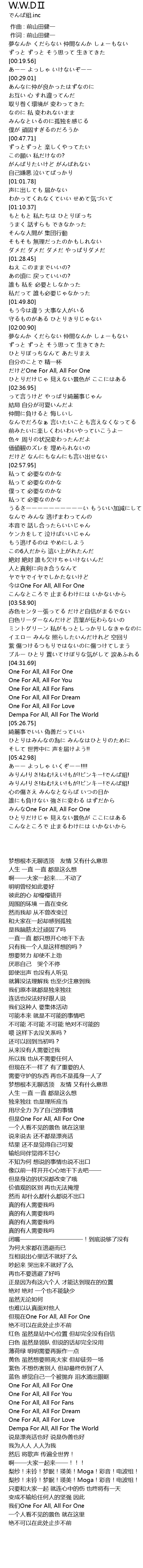 | [05:32.65] | ひとりはみんなの為に みんなはひとりのために |