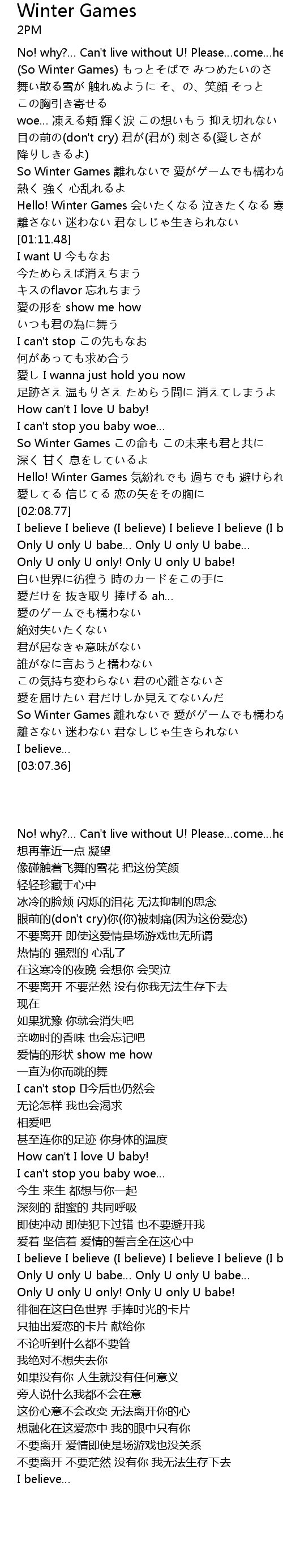 | [00:41.94] | So Winter Games 離れないで 愛がゲームでも構わない |