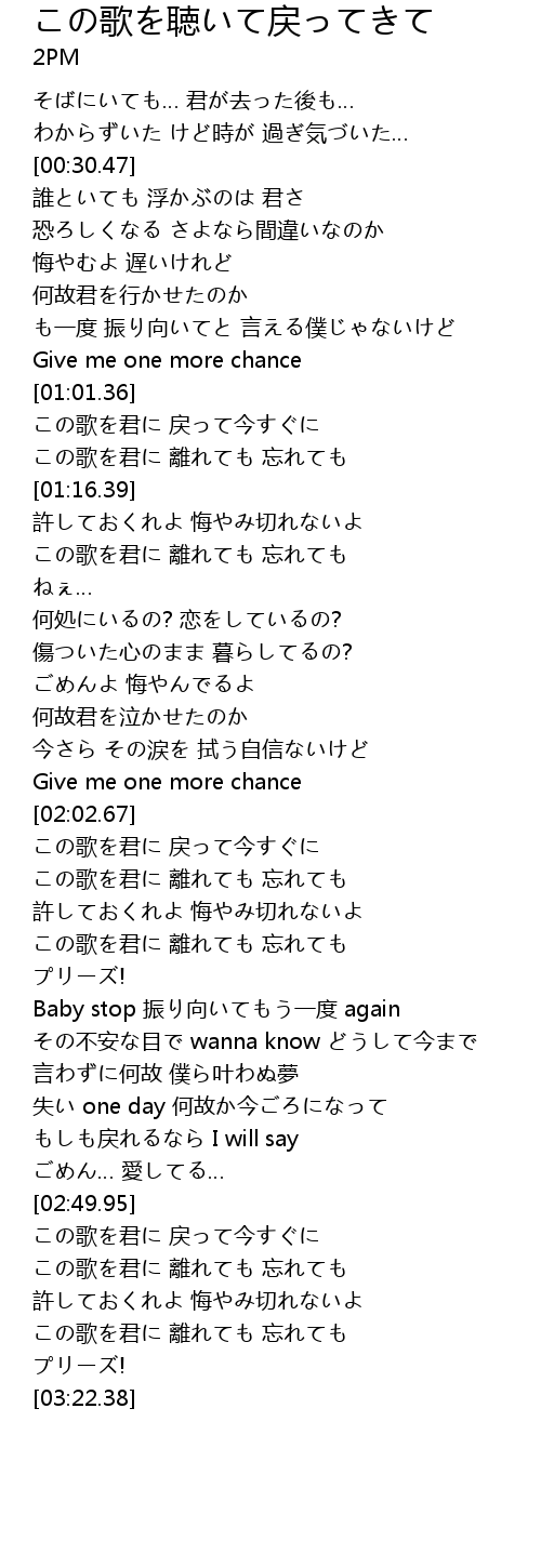 | [02:34.15] | Baby stop 振り向いてもう一度 again |