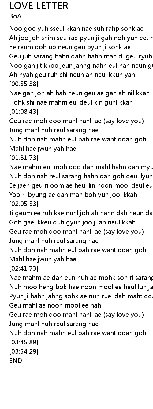 | [03:23.58] | Geu rae moh doo mahl hahl lae (say love you) |