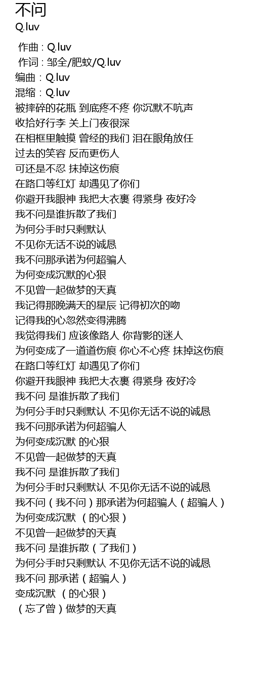 | [00:01.00] | zuò cí : zōu quán féi wén Q. luv |