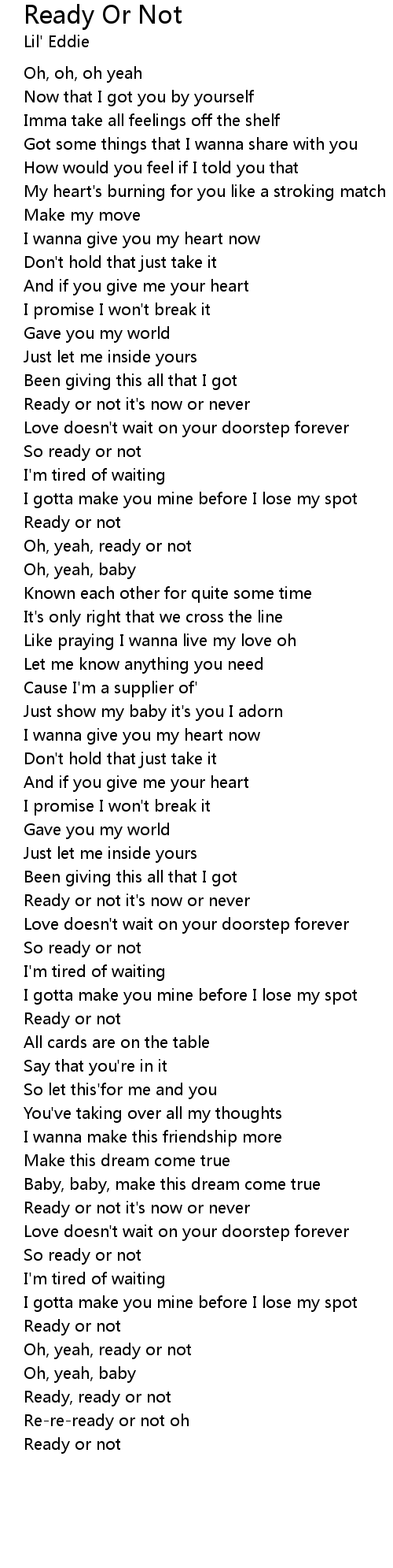 Oh, yeah, ready or not |