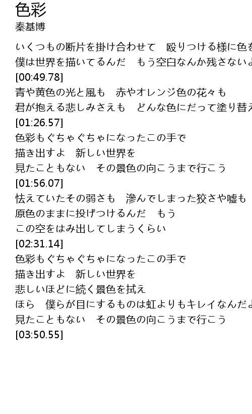 | [00:37.96] | 僕は世界を描いてるんだ もう空白なんか残さないように |