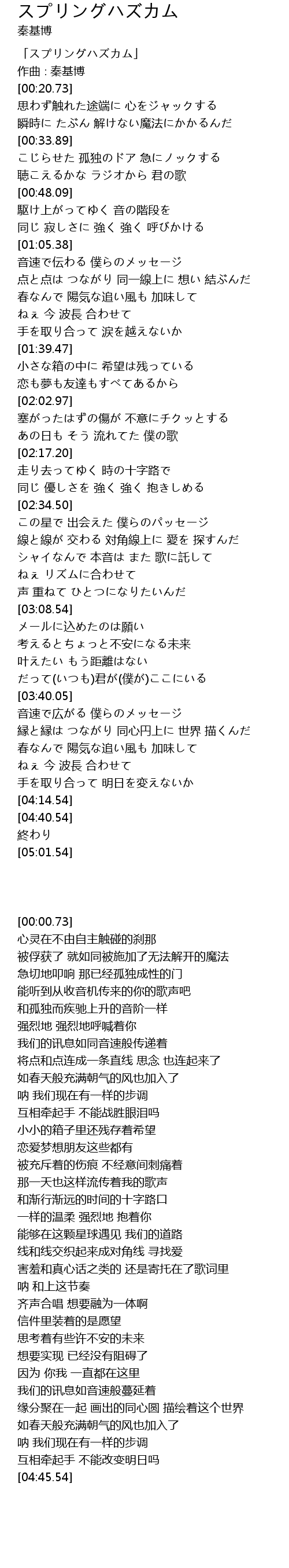 | [01:19.79] | 春なんで 陽気な追い風も 加味して |