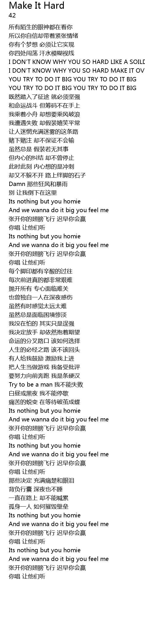 | [00:17.74] | YOU TRY TO DO IT BIG YOU TRY TO DO IT BIG |