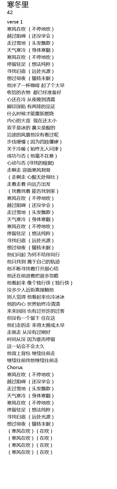 | [01:40.600] | 寒风在吹 (不停地吹) |