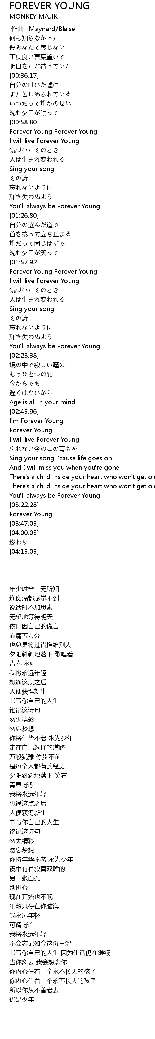 | [03:06.92] | There's a child inside your heart who won't get old |