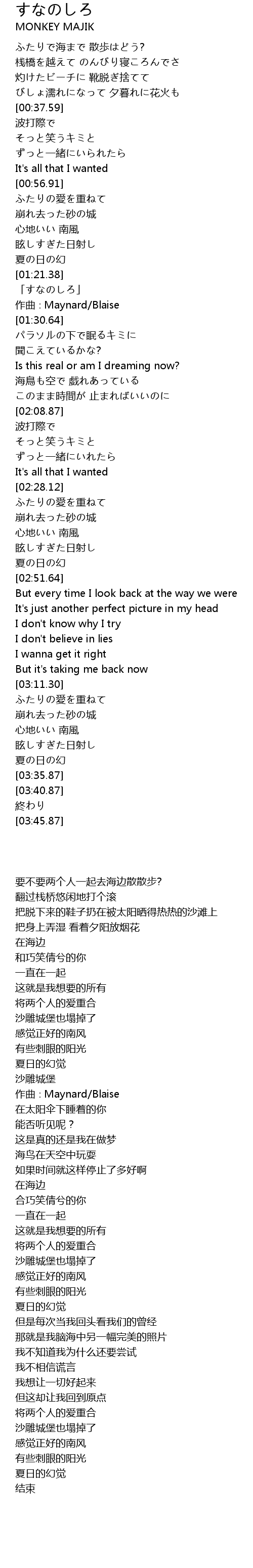 | [00:19.70] | 灼けたビーチに 靴脱ぎ捨てて |
