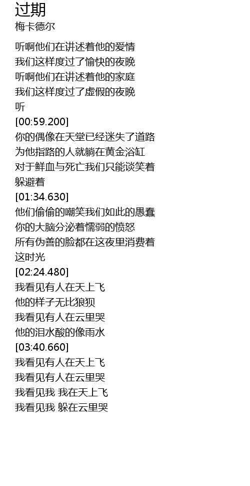 | [04:44.790] | 我看见我 躲在云里哭 |