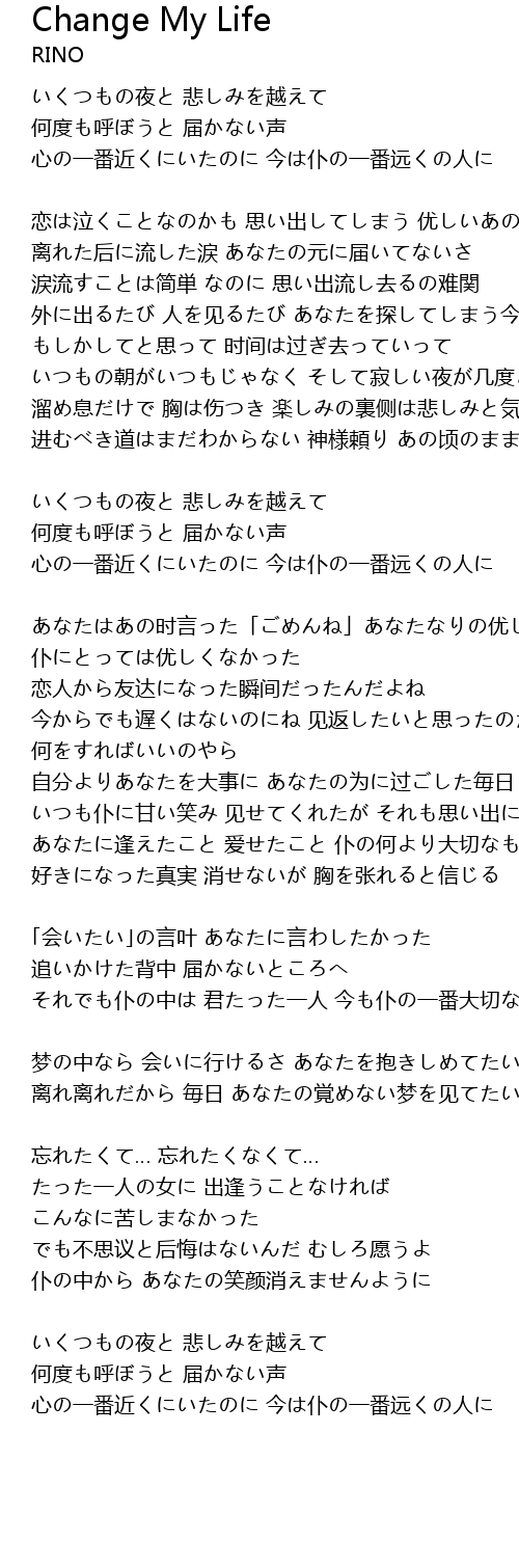 | 外に出るたび 人を见るたび あなたを探してしまう今だに | |