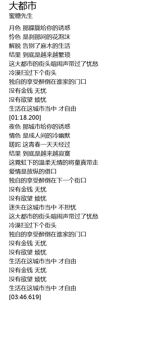 | [03:23.649] | 生活在这城市当中 才自由 |