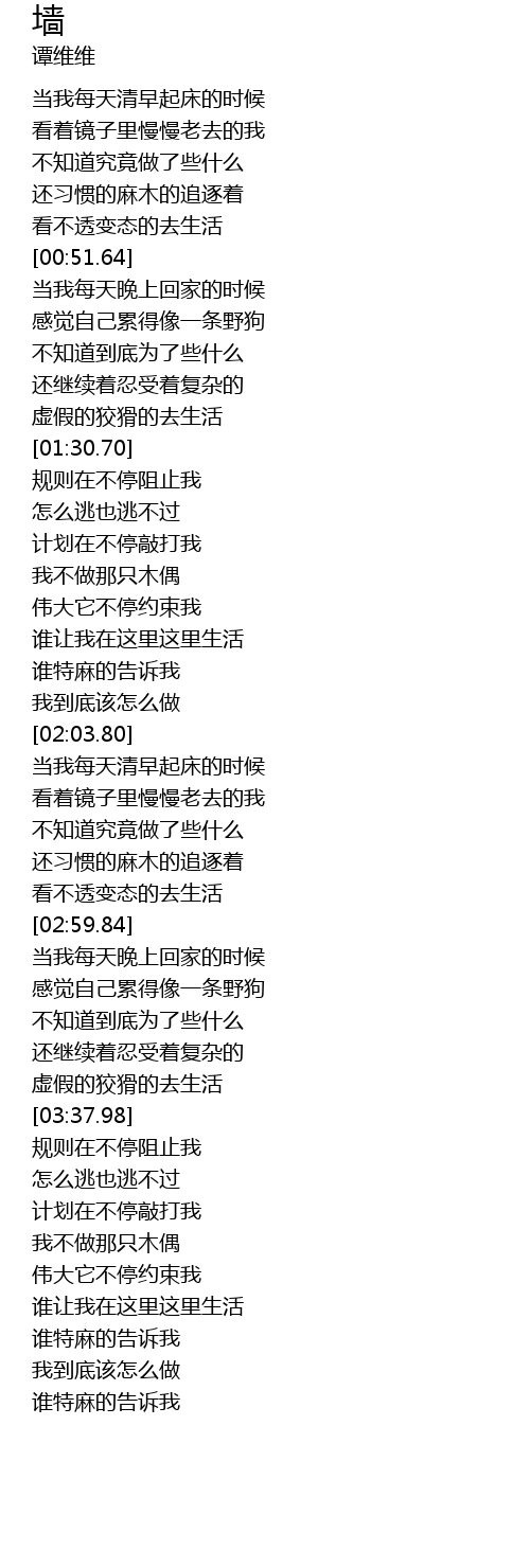 | [01:56.65] | shuí tè má de gào sù wǒ |