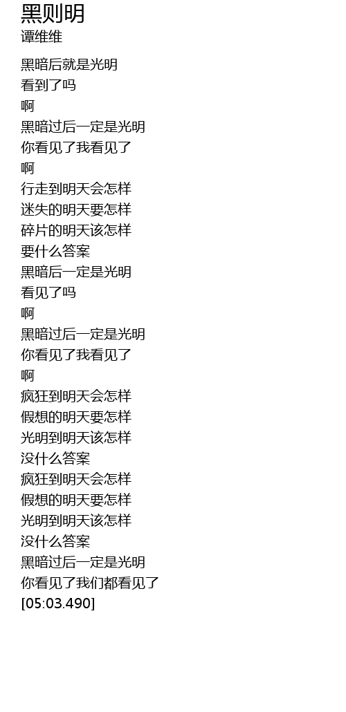 | [03:31.590] | 光明到明天该怎样 |