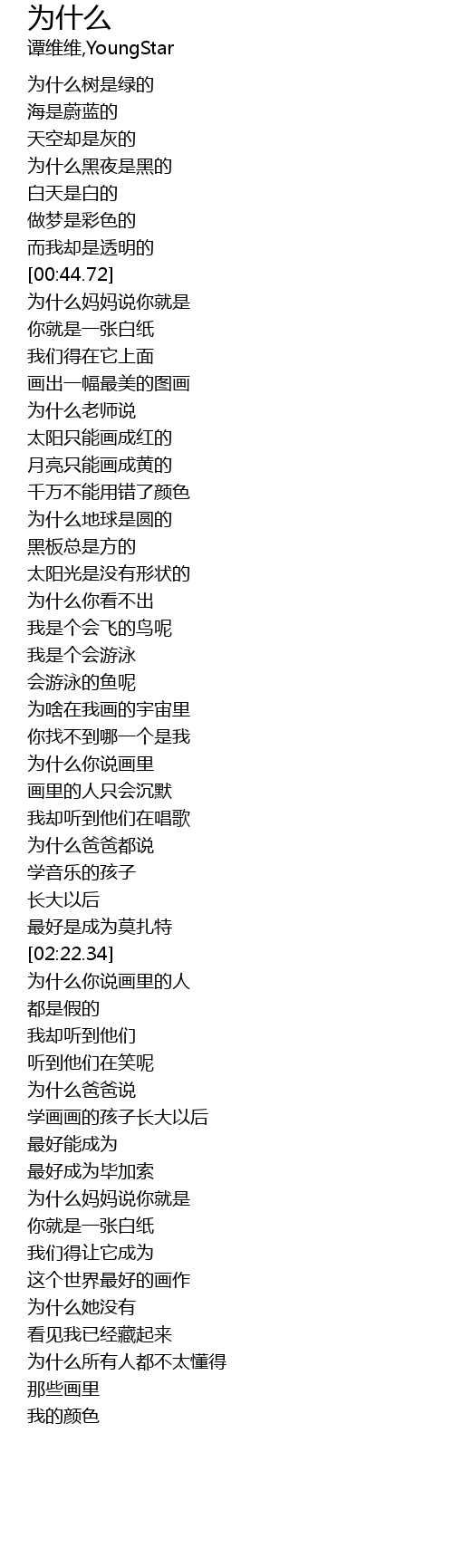 | [00:16.69] | 为什么树是绿的 |