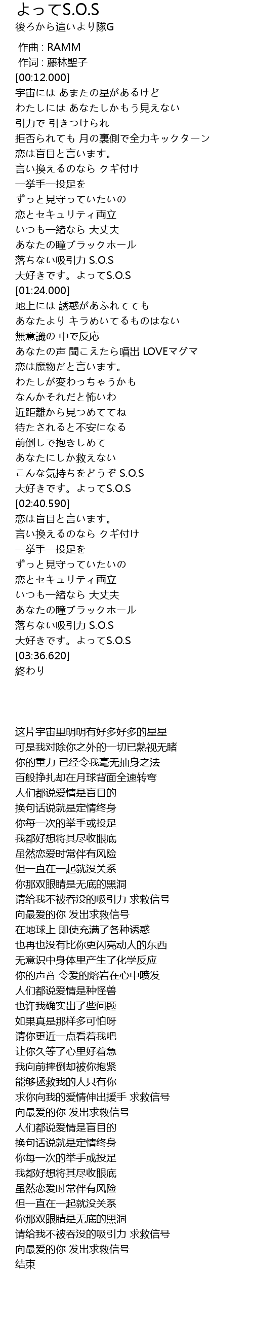| [02:32.580] | 大好きです。よってS.O.S |