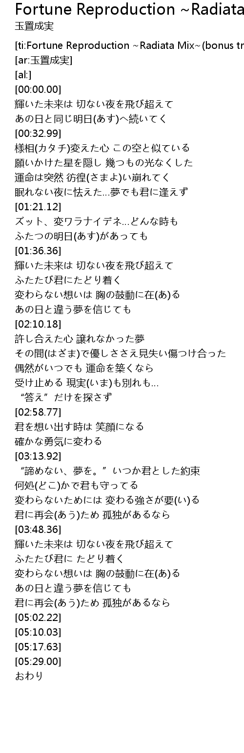 | [ti:Fortune Reproduction ~Radiata Mix~(bonus track)] | |