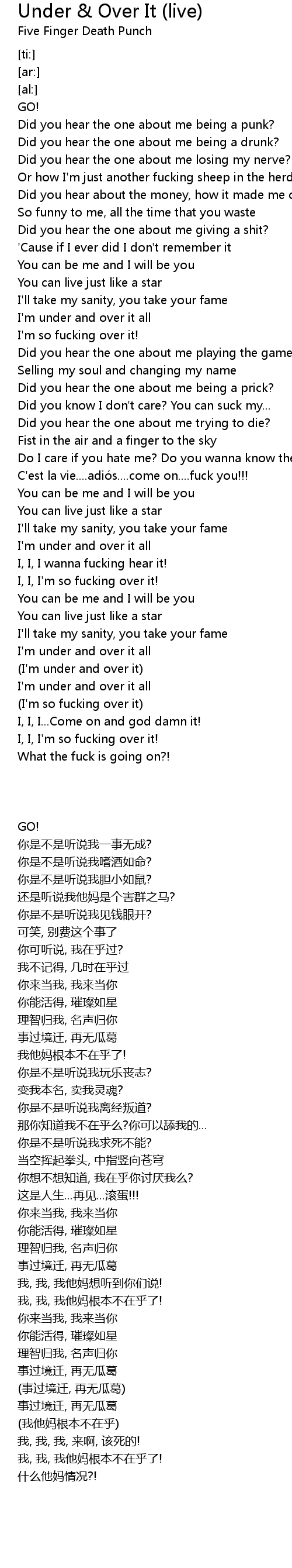 | [01:51.81] | C' est la vie.... adio s.... come on.... fuck you!!! |