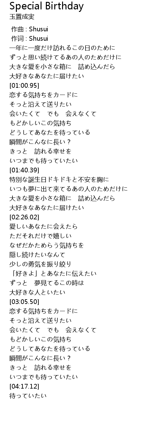 | [01:48.10] | 特別な誕生日ドキドキと不安を胸に |