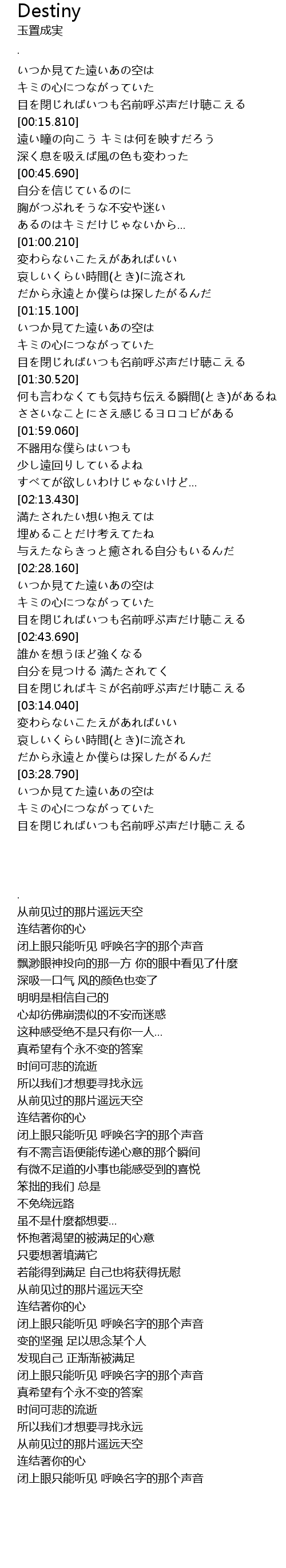 | [00:31.360] | 遠い瞳の向こう キミは何を映すだろう |