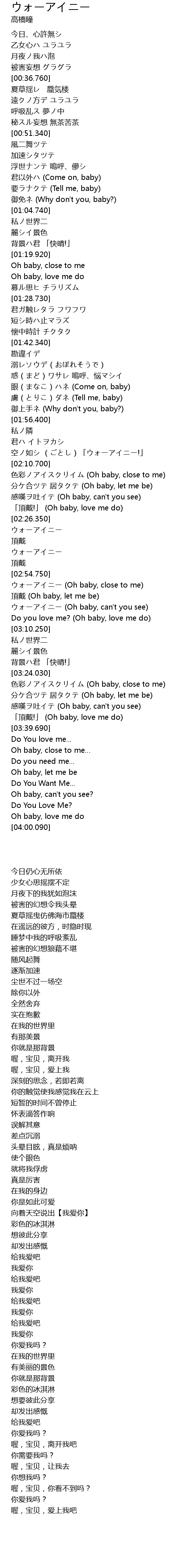 | [03:02.910] | ウォーアイニー (Oh baby, can't you see) |