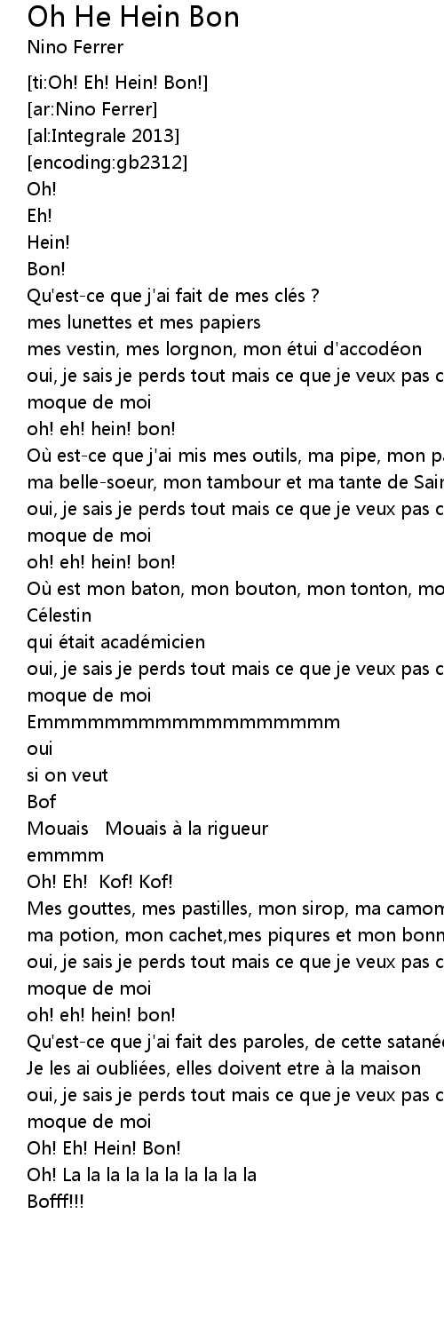 | [ti:Oh! Eh! Hein! Bon!] | |