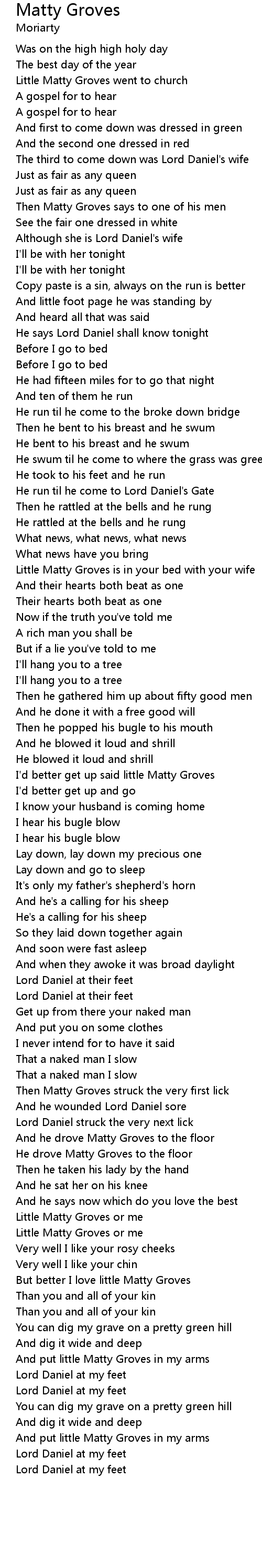 | Little Matty Groves went to church | |