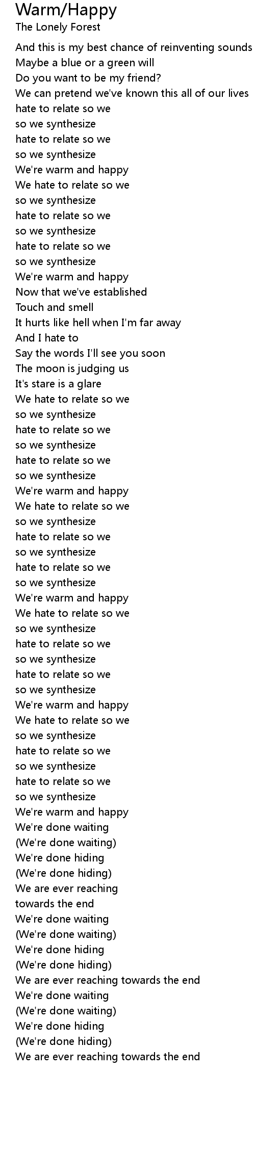 We're warm and happy |