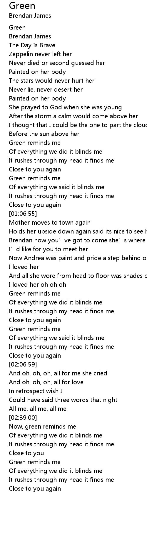 | [00:40.57] | Green reminds me |