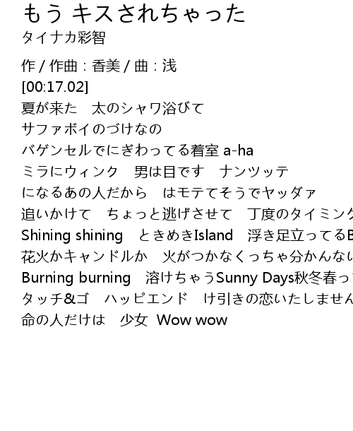 | [01:02.28] | Shining shining ときめきIsland 浮き足立ってるBoys&Girls |