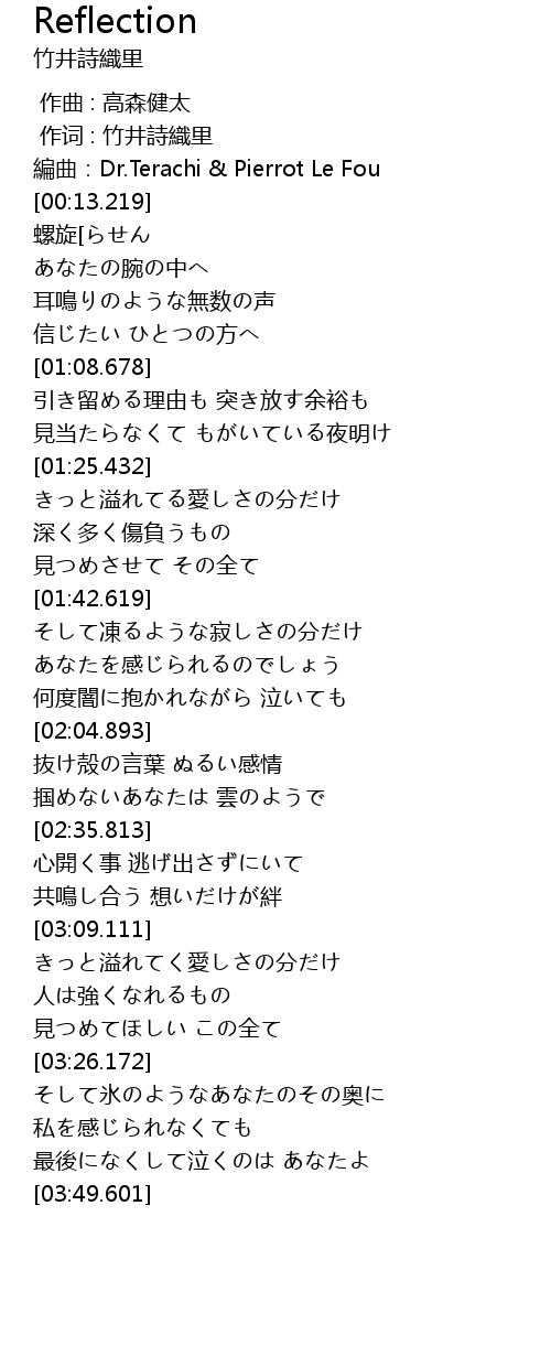 | [03:09.320] | きっと溢れてく愛しさの分だけ |
