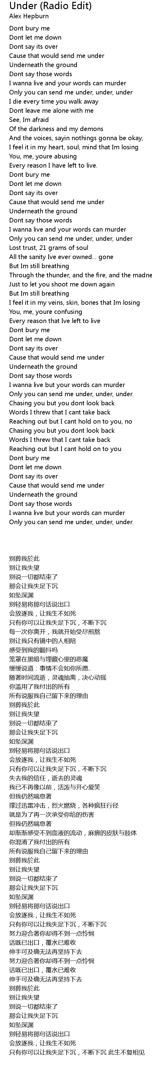 Under (Radio Edit) Lyrics