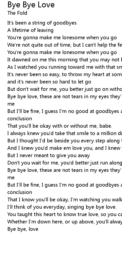 Bye bye love, these are not tears in my eyes they're just memories you gave to me |