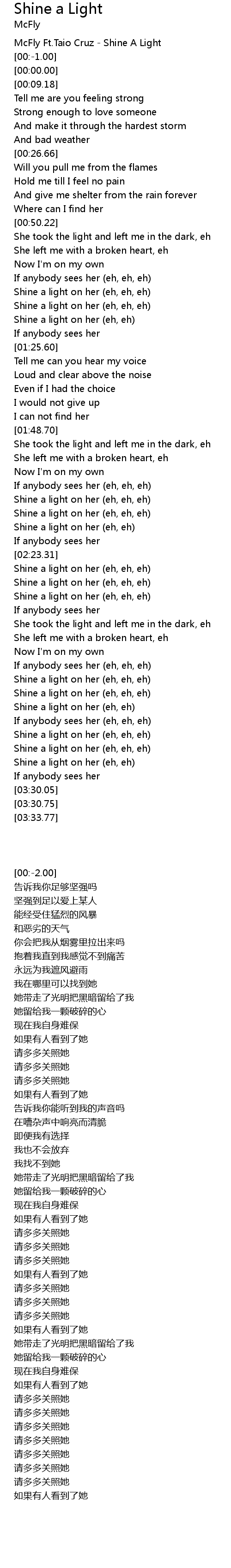 | [00:-2.00] | McFly Ft.Taio Cruz - Shine A Light |