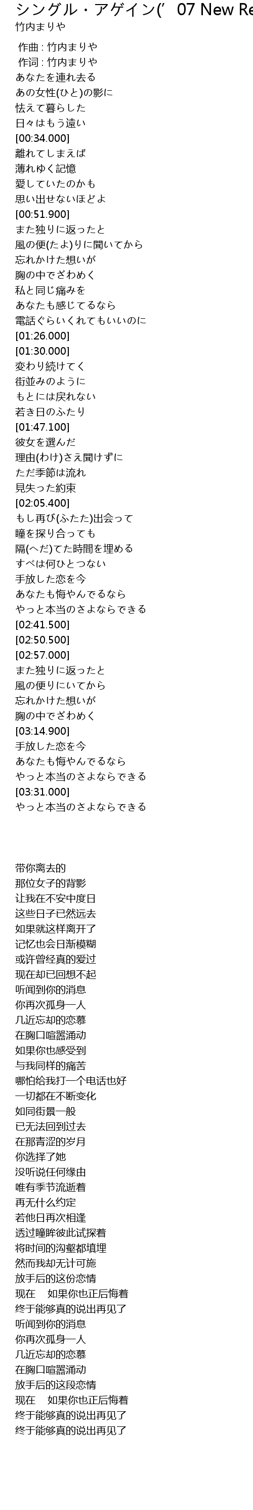 | [03:15.000] | 手放した恋を今 |