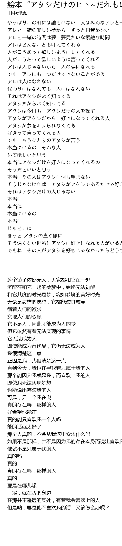 | [00:16.40] | アレと一緒の楽しい夢から ずっと目覺めない |