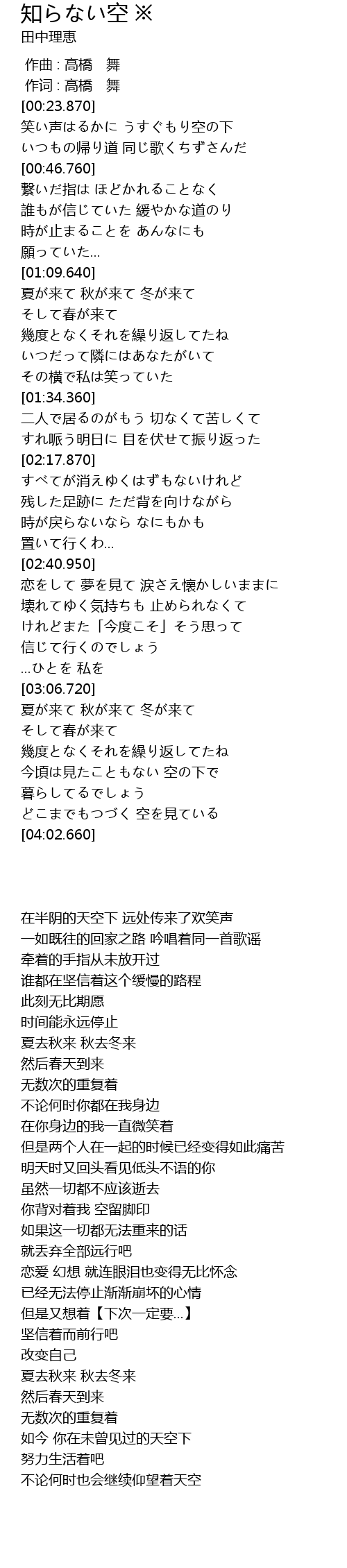 | [03:49.540] | どこまでもつづく 空を見ている |