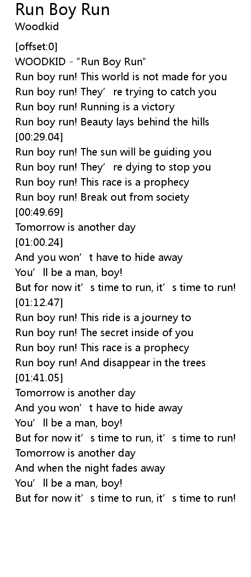 | [00:00.39] | WOODKID - "Run Boy Run" |