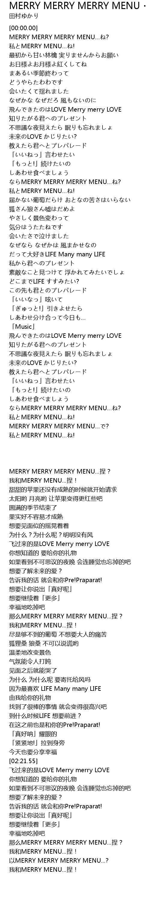 | [03:12.22] | 私とMERRY MENU…ね! |