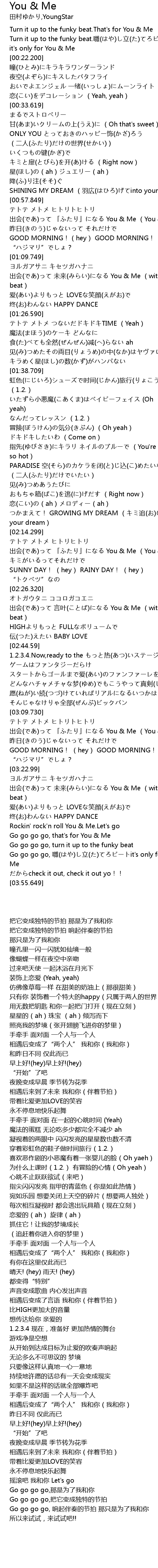 | [03:25.689] | 出会(であ)って 未来(みらい)になる You & Me (with the beat) |